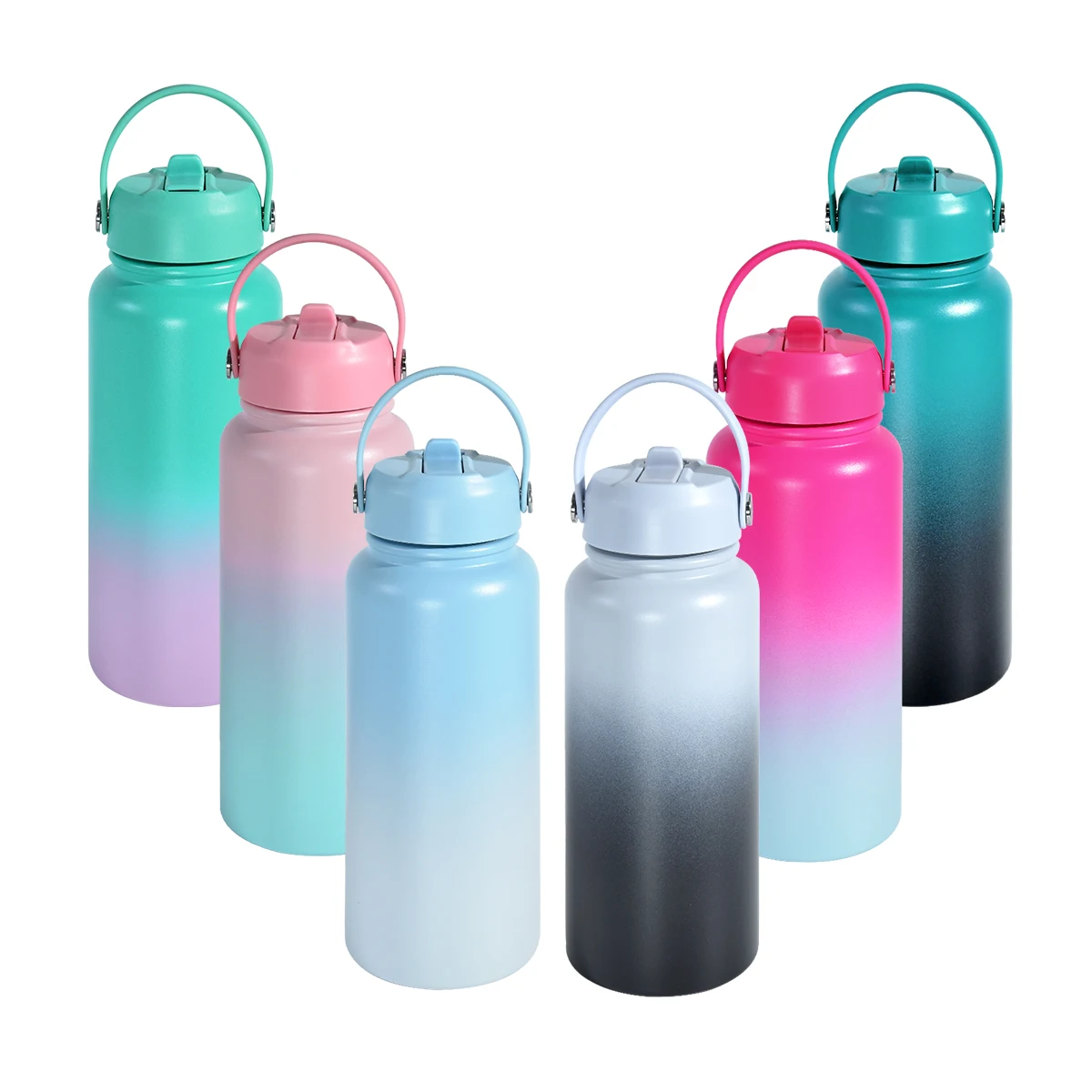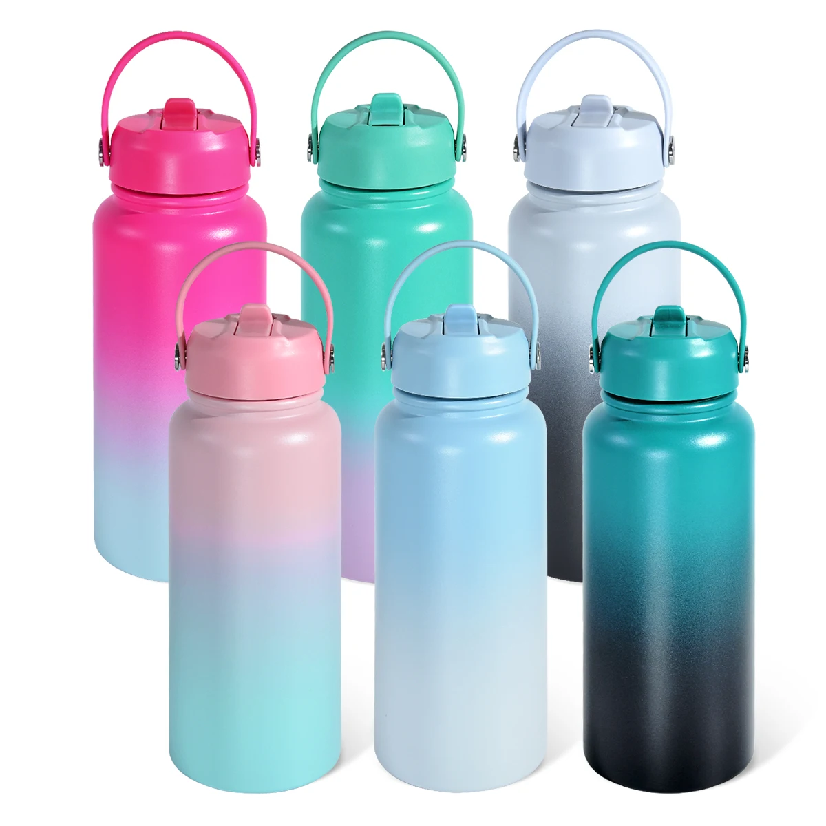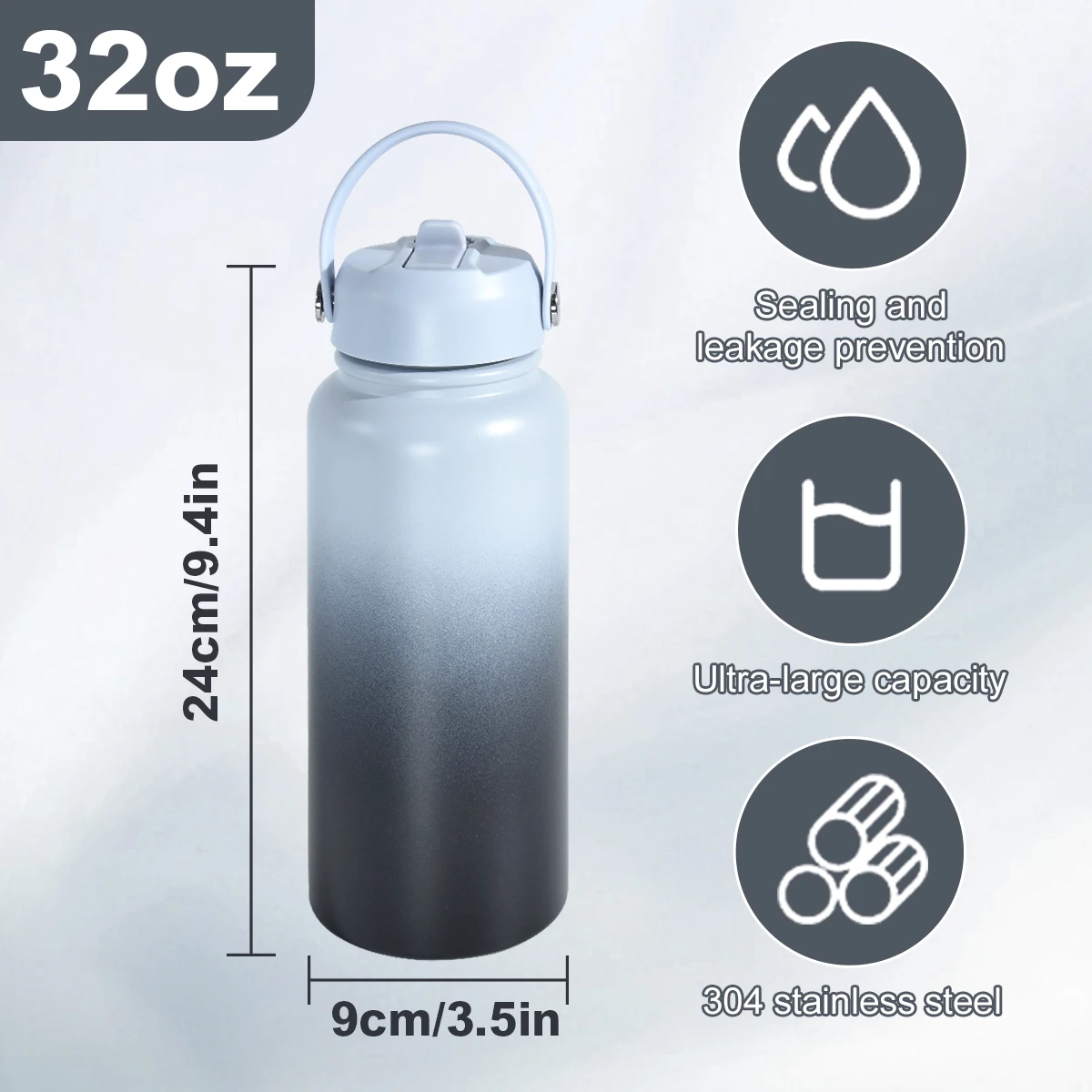 12pcs Double Wall Insulated Stainless Steel 32oz Sport Water Flask Bottle Double Drinking Lid