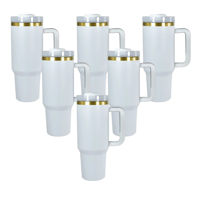 6pcs 40oz Double Wall Insulated Vacuum Glod Plated Chocolate Color Stainless Steel Tumbler He
