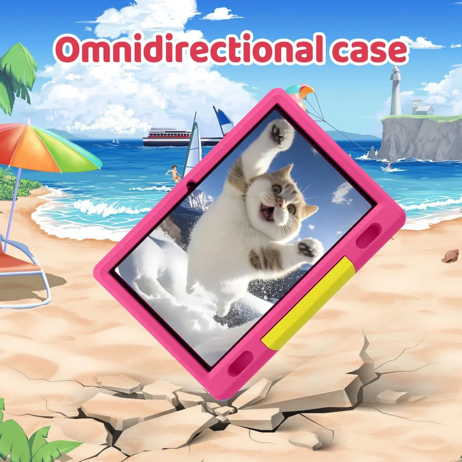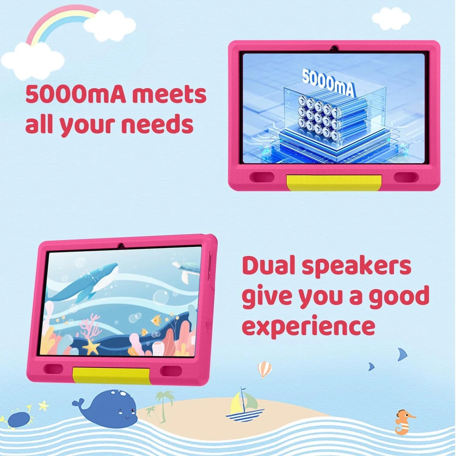 【 Multifunctional Android Tablet for Kids 】This 10-inch tablet for kids comes with 1280x800 IPS HD touch screen,Android 13.0 system, 1.6 GHz quad-core processor,With 64GB of storage space, you can store more suitable cartoons, videos, educational games, e-books and so on.The 5000mAh battery provides enough time for kids to read and watch TV videos.