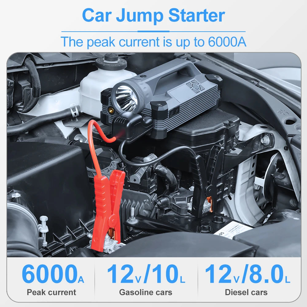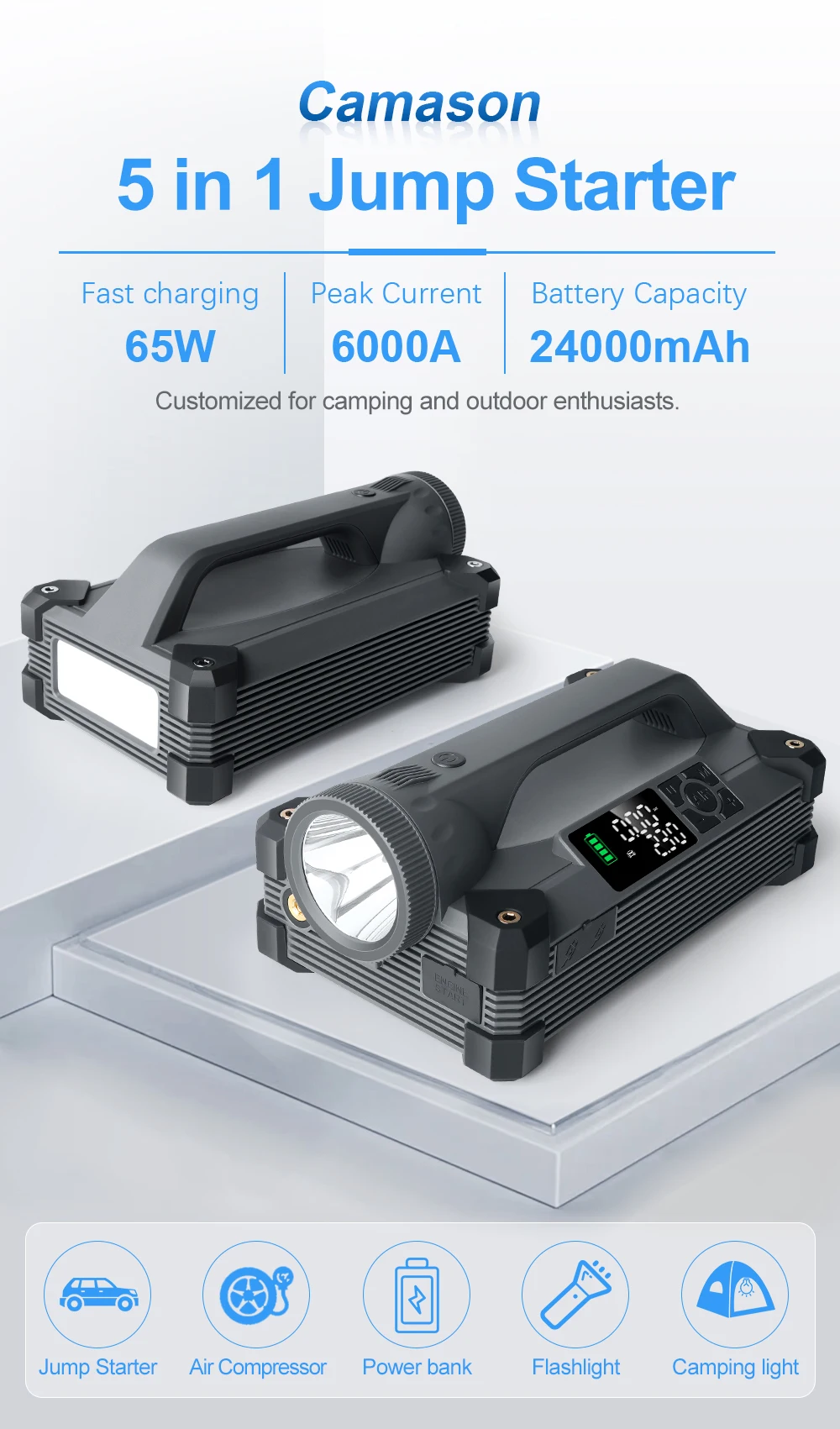 Camason Tire Inflator Portable Air Compressor Pump 150 PSI for for Auto Car Motorcycles Bicycles,6000A Jump Starter and PD 100W