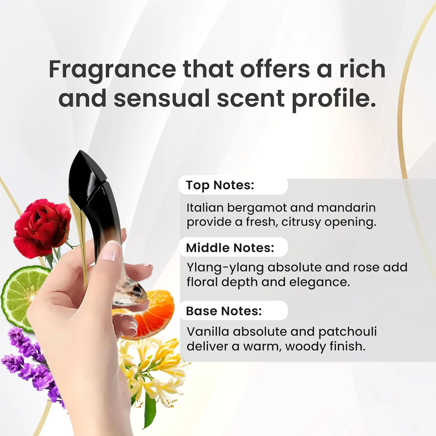 The iconic stiletto-heel bottle reflects elegance, empowerment, and timeless glamour — a true symbol of feminine strength and beauty.