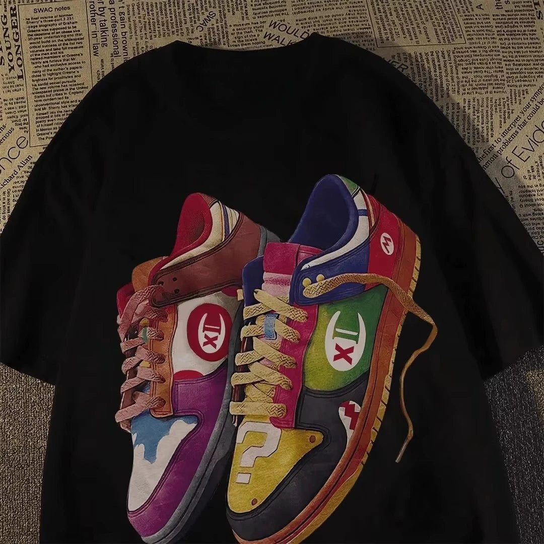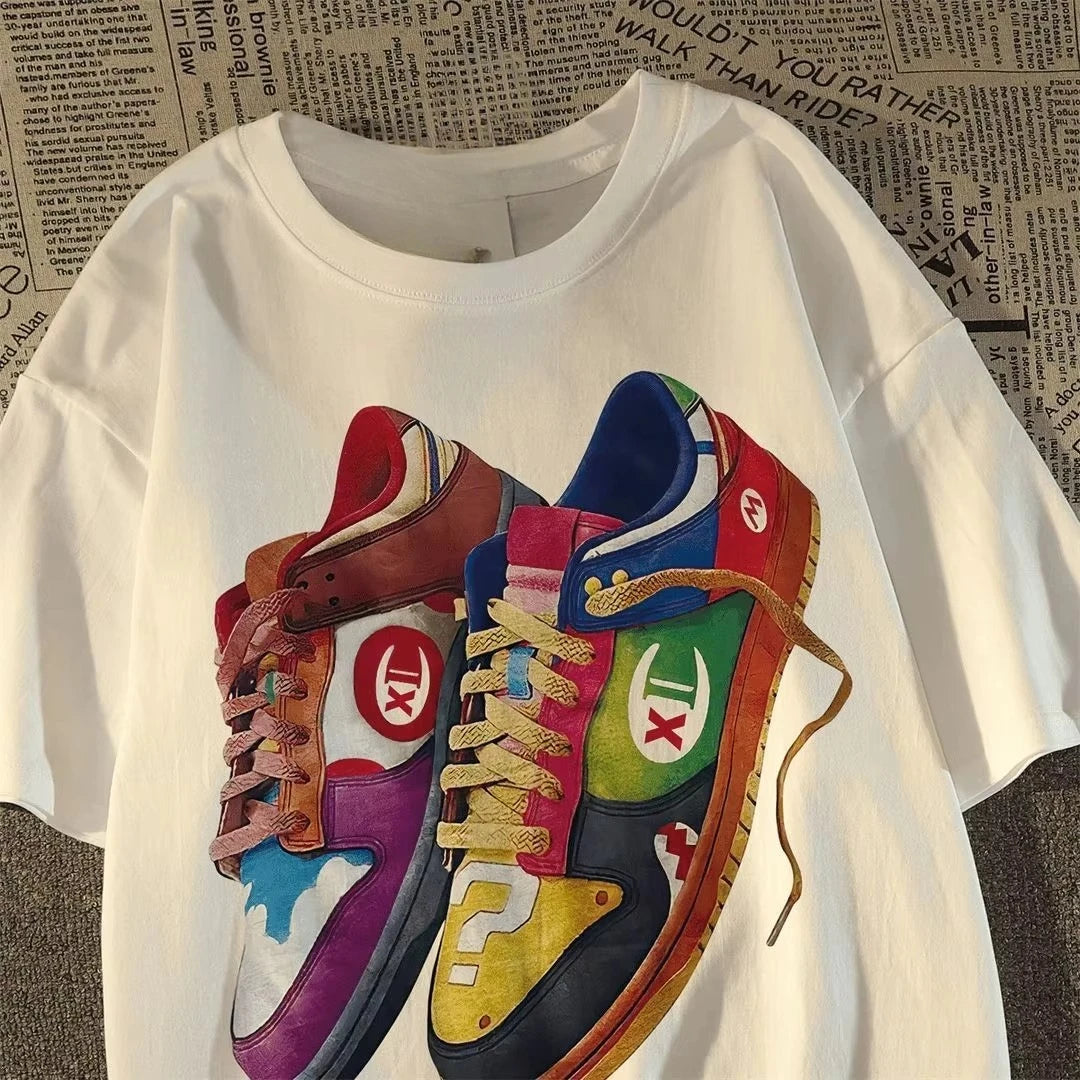 Cotton Vintage Round Neck Short Sleeve T-Shirt for Men White Top