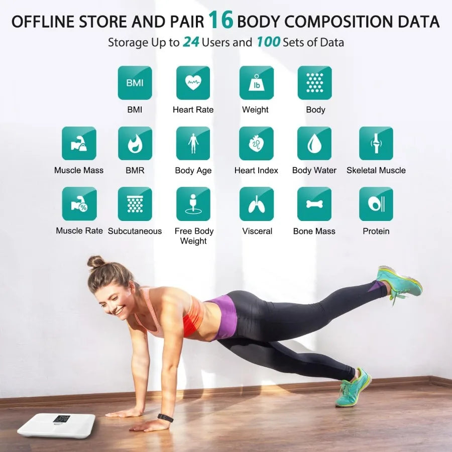 Digital Smart Bathroom Scale for Body Weight Large Color Display Screen 16 Body Composition Metrics Including BMI Water Weight