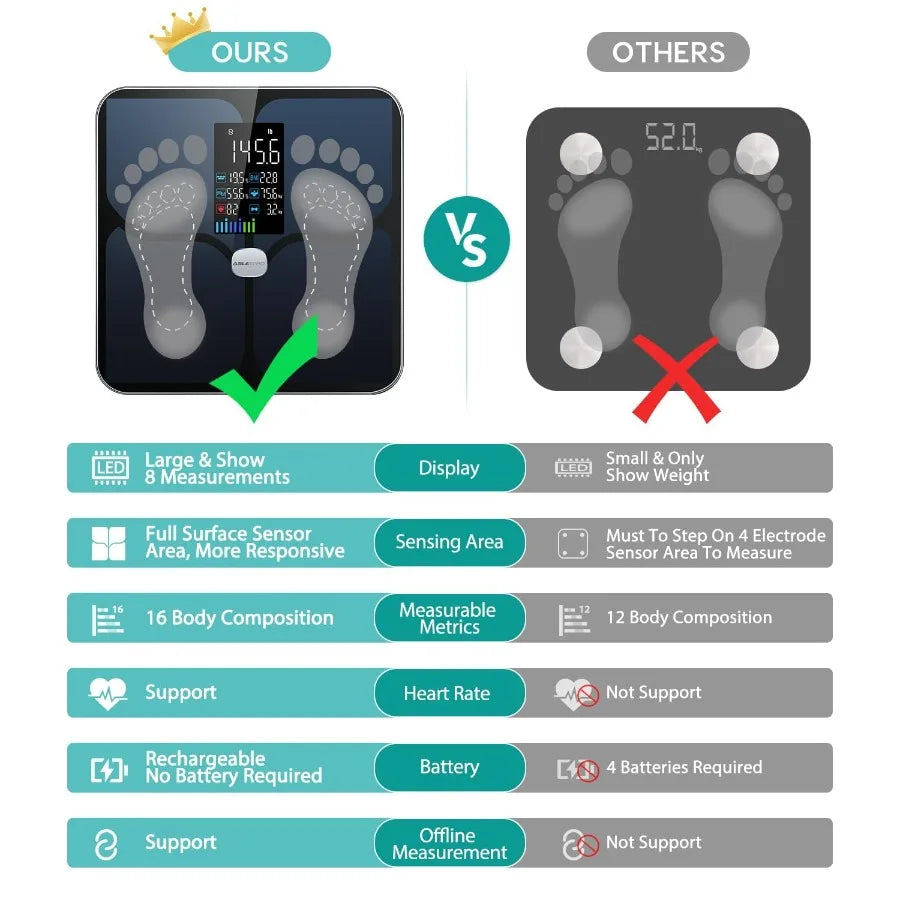 Digital Smart Bathroom Scale for Body Weight Large Color Display Screen 16 Body Composition Metrics Including BMI Water Weight