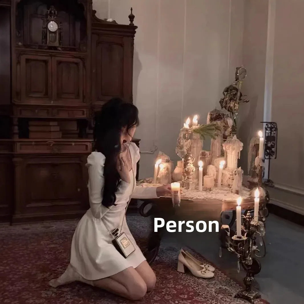 Elegant French Style Square Collar Long Sleeve Dress Women's Fashion Slimming Waist Cinched Autumn New Mini Dress Polyester Fibe