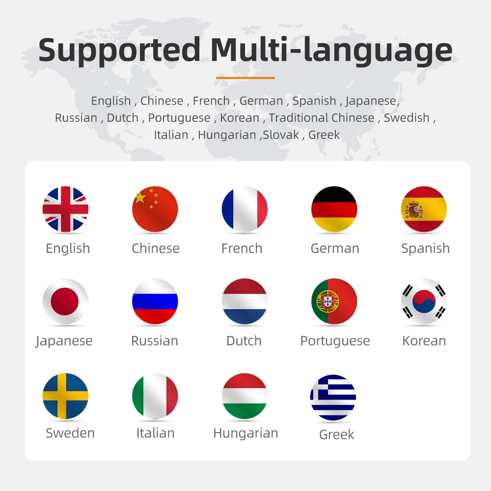 Muiti-Languages Supported: Korea, Spanish, Portuguese, French,Swedish, English, Dutch, Japanese, Italian, German,Russian, Hungarian, Greek