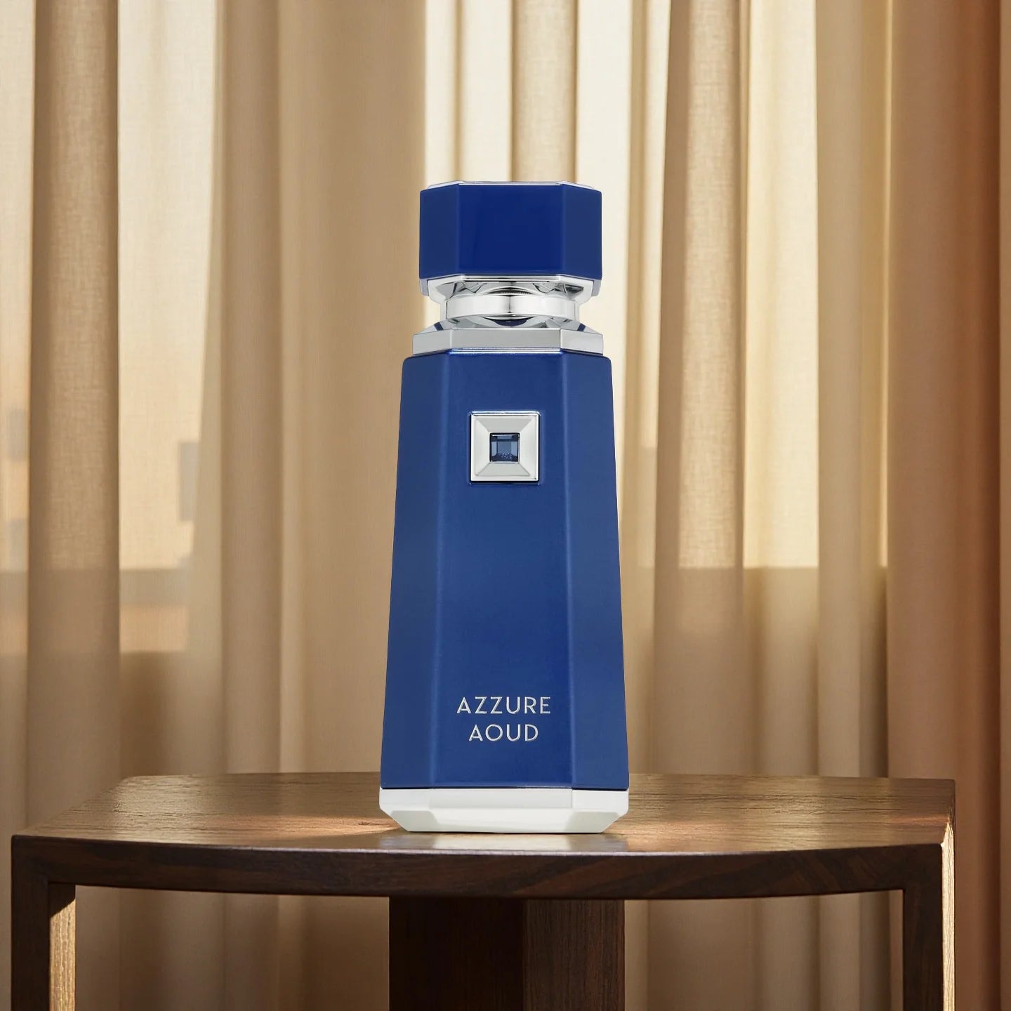 Azzure Aoud é uma rica mistura de doçura frutada, açafrão quente, couro macio e profundo, envolto em âmbar cremoso de baunilha.