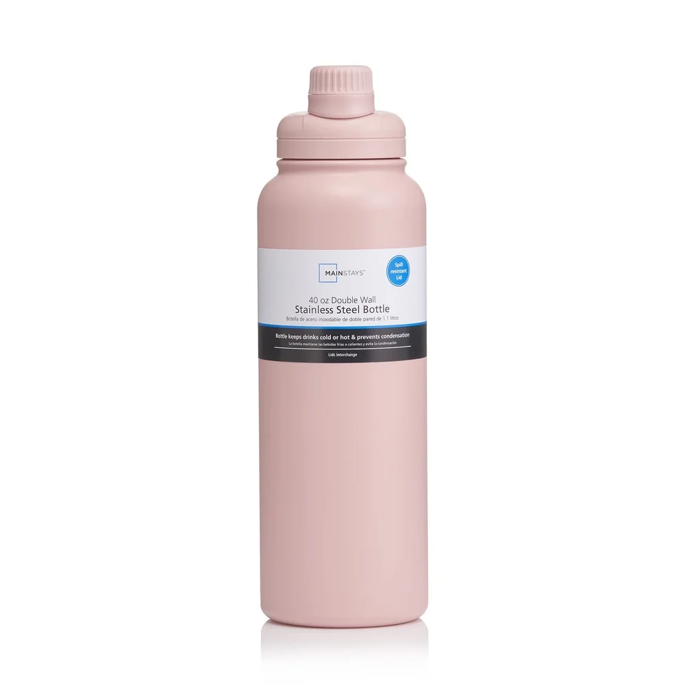 This 40 fl oz double wall SS bottle has 4 colors (rich black/pearl blush/blue essence/arctic white) available for your selection. It is made of 304 stainless steel, 0. 5 mm/inner and 0. 5 mm/outer. The surface is finished with a matte powder coating. The chug lid is leak-proof and interchangeable with MS's other hydration bottles. Double-wall vacuum insulation keeps drinks cold or hot. Double-wall sweat-free design prevents condensation.