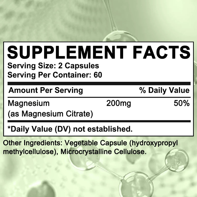 Magnesium Citrate Supplement - Supports Heart, Cardiovascular, Immune Health, Energy Metabolism, Gut Digestion