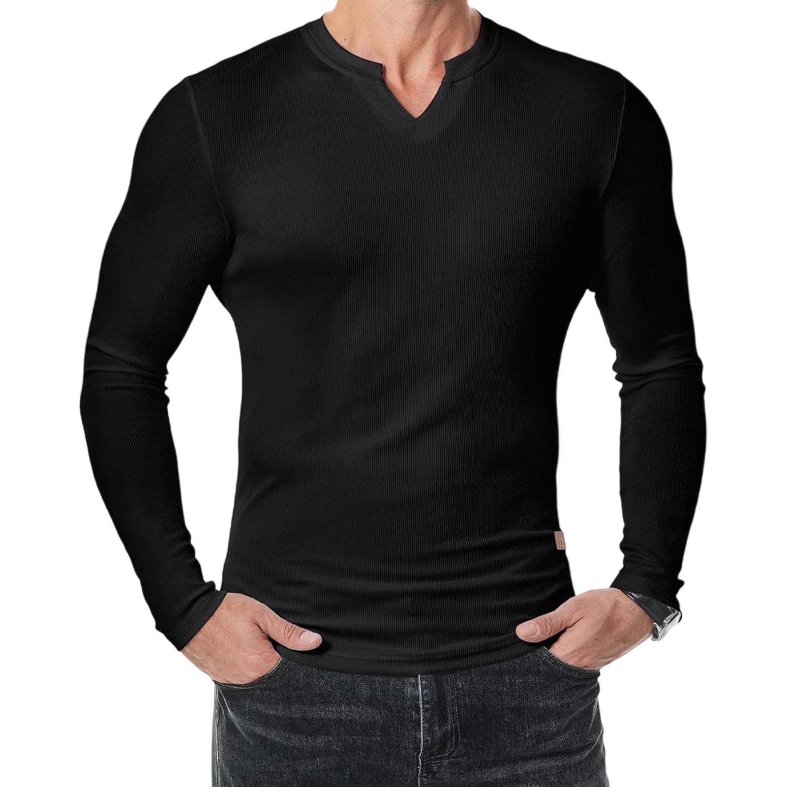 Men s Casual Fit Long Sleeve Solid Color Muscle Shirts Spring Fall Tops Fashionable Comfortable T-Shirts