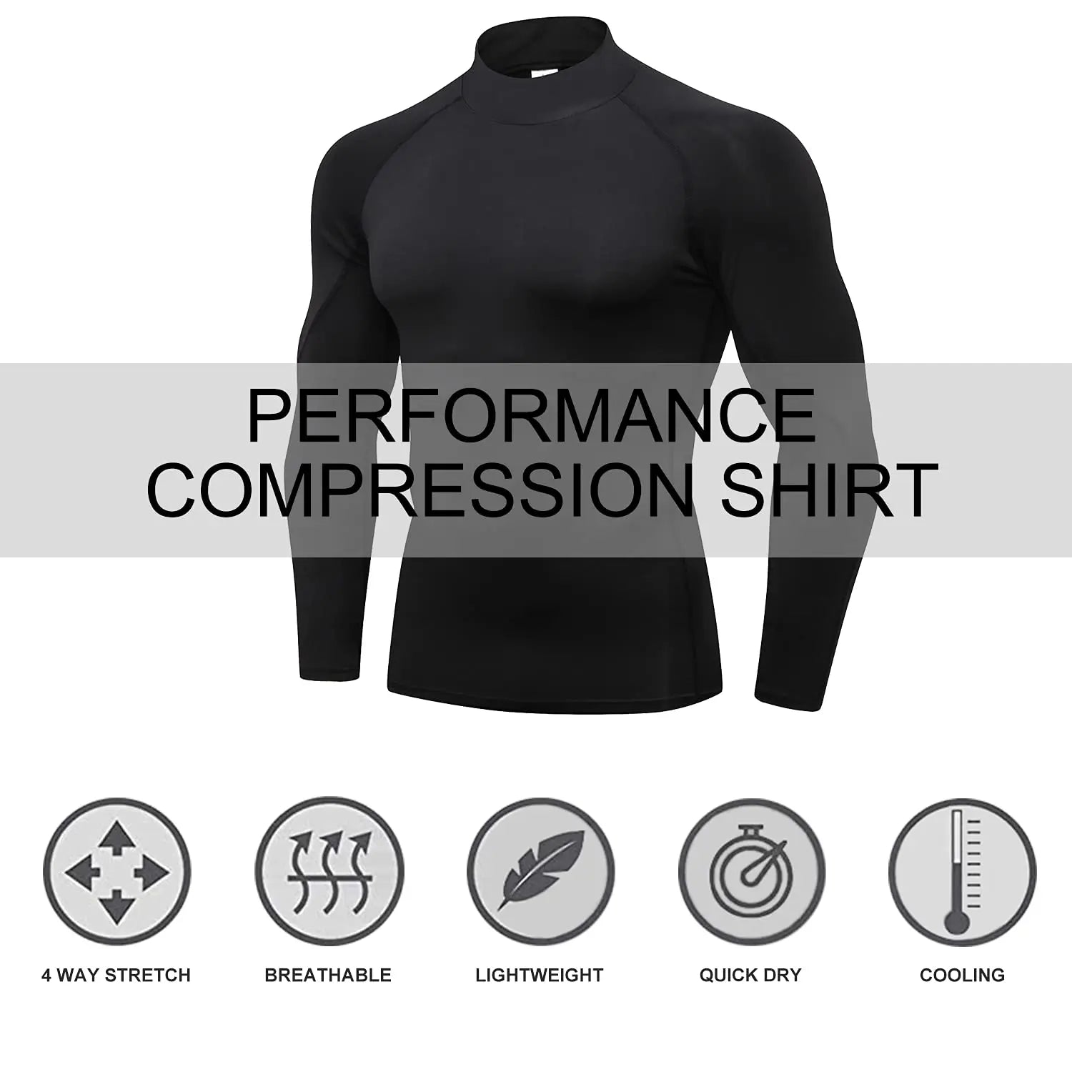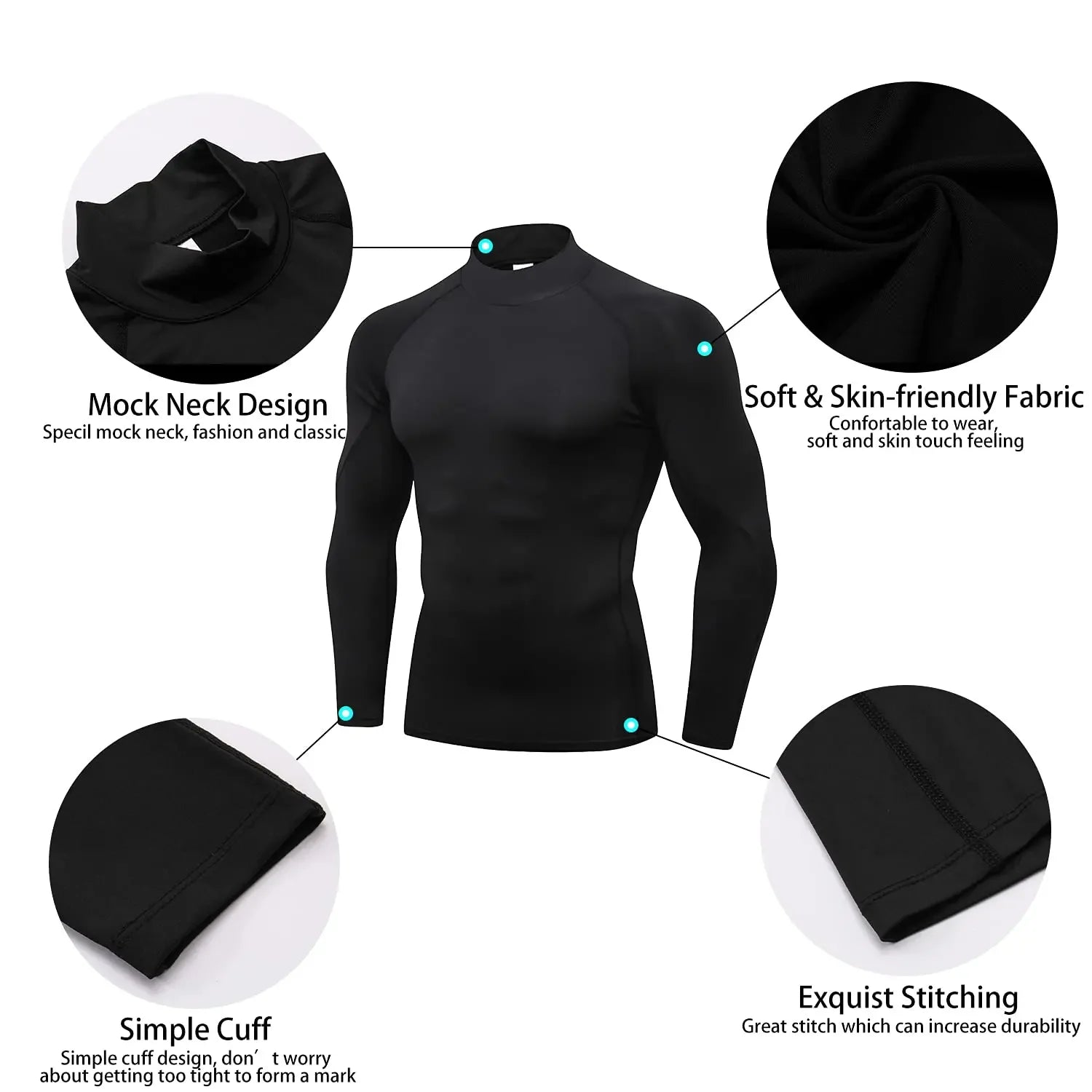 Mens Compression Shirts Long Sleeve Quick Dry Mock Turtleneck Compression Undershirts for Men Moisture Wicking Running Athletic