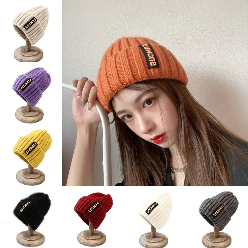New Long Label Knit Beanie Solid Color Sun Protection Winter Hat Crochet Design Soft Warm Cap Winter Season