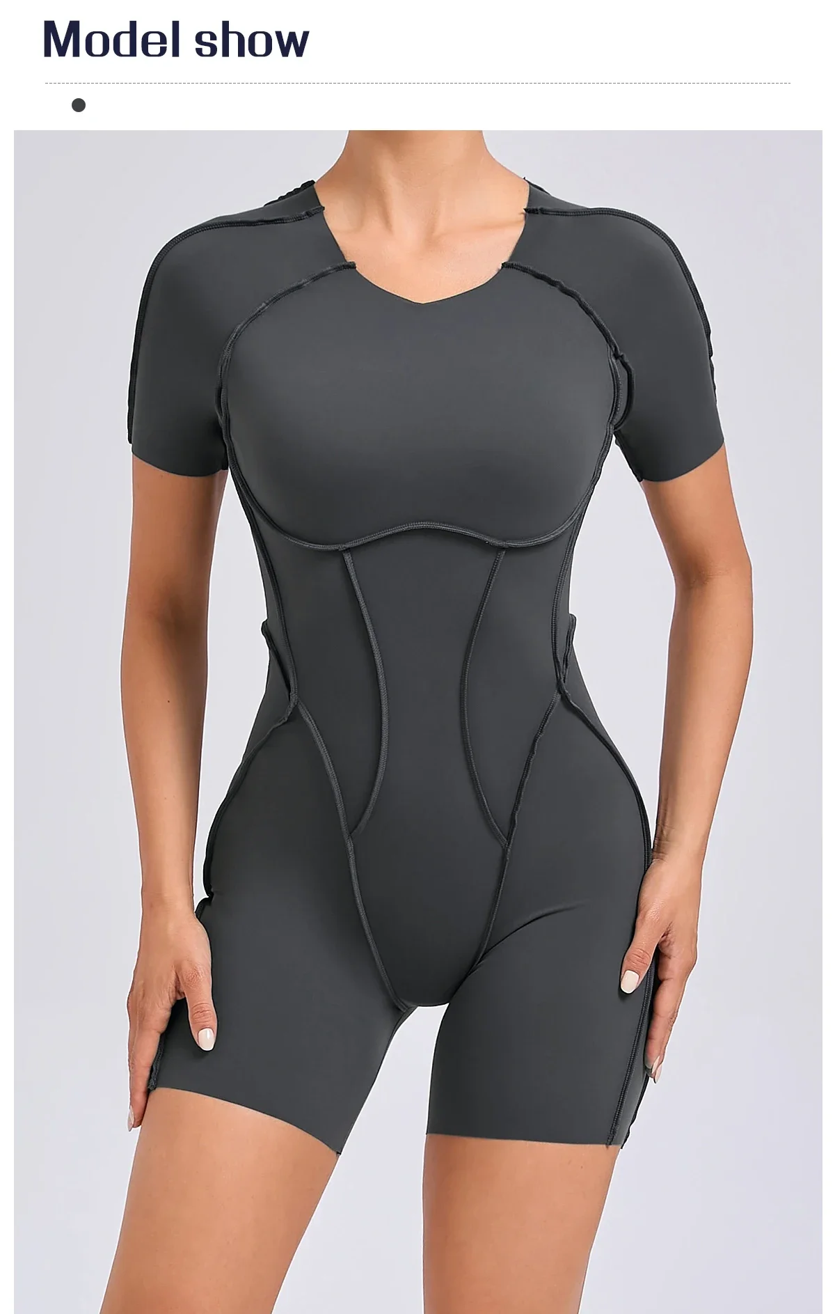 Short Jumpsuit Gym Clothes For Women Sportswear Fitness Overalls Backless Scrunch Booty Yoga Suit Sports Set Outfit