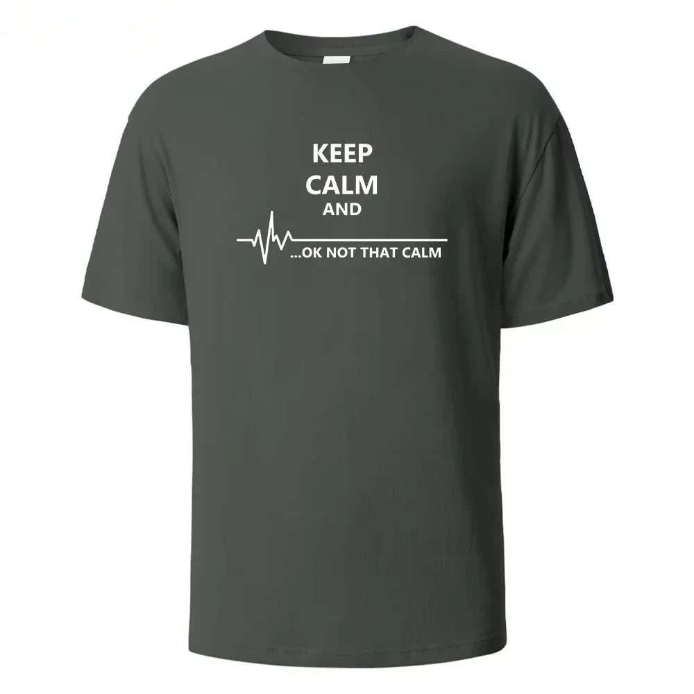 Summer Keep Cale Print Fashion Trend Street Pure Cotton T-shirt Men's Casual Short Sleeved Round Neck T-shirt Casual Sports