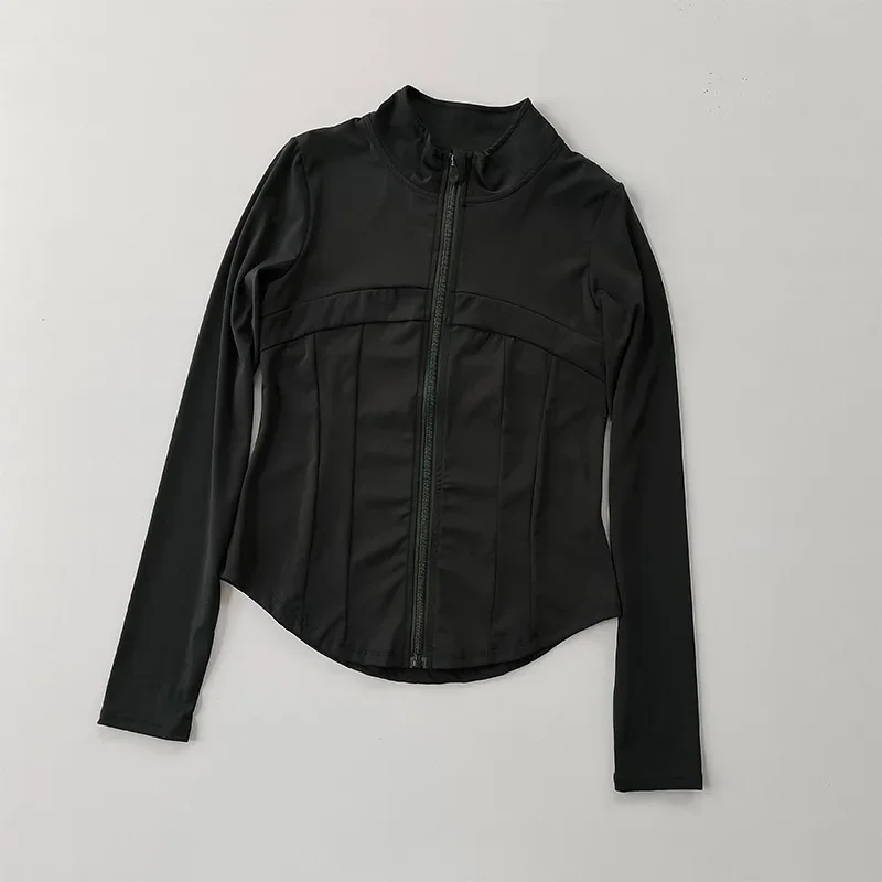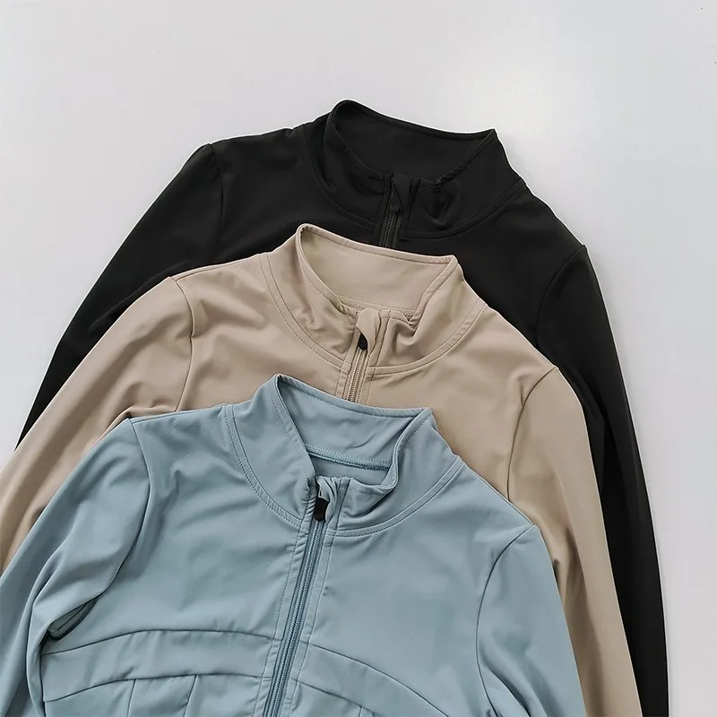 Fall/winter stand-up collar zipper long-sleeved gym tight-fitting quick-drying tops women's breathable running yoga short cropped jacket Gym Tops