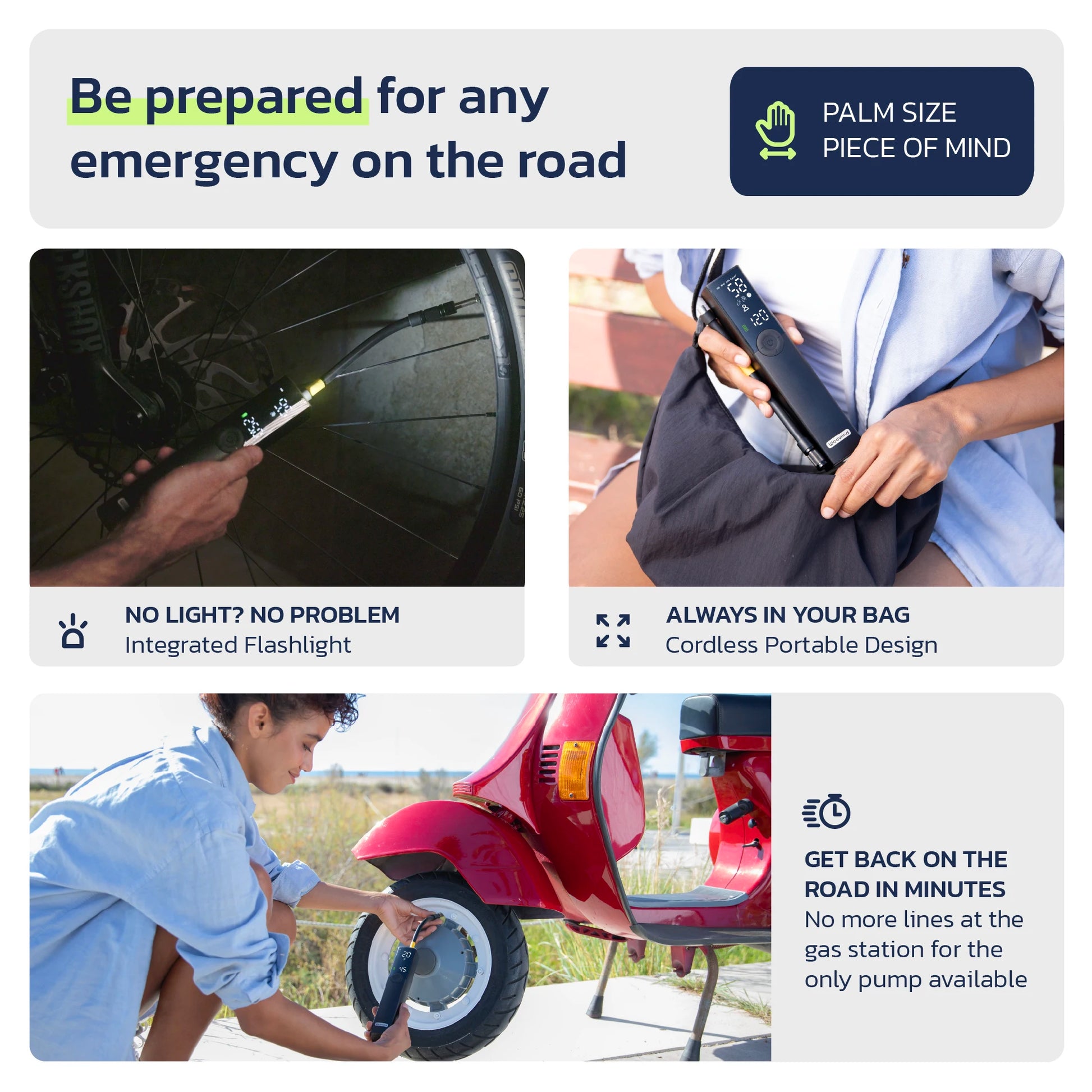 Ultimate Versatility: up to 120PSI, the BP188 tire inflator can inflate a variety of tires, including car, road bikes, mountain bikes, dirt bikes, motorcycles, scooters, and even swimming rings and basketballs